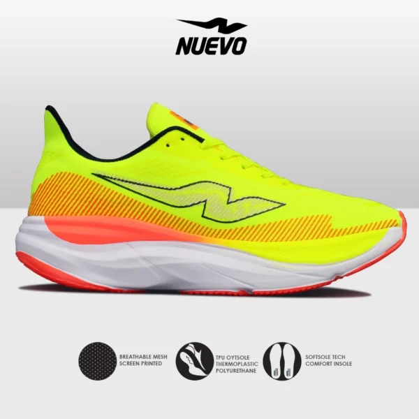 NUEVO SOARS XI Material Upper Breathable Mesh double layer yang kokoh dan lentur Outsole Thermoplastic Polyurethane TPU Rubber, yang mempunyai karkater lentur, empuk, ringan dan anti-slip Softsole Insole Nuevo yang nyaman dikaki saat menggunakan/tidak kaos kaki
